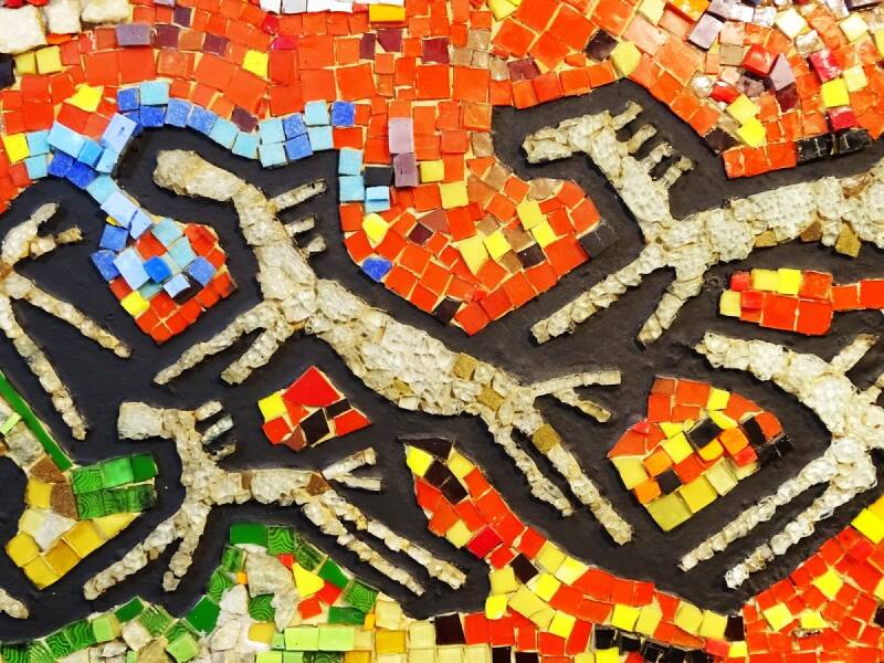 Dit was mijn eerste mozaiek "Vluchtende Paarden voor een Bosbrand". (A.1.1) Afmeting 130x45 cm.